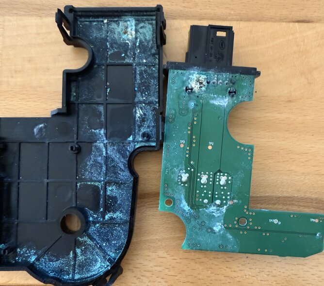 Feuchtigkeitseintritt in das Gehäuse der Steuerungsplatine.